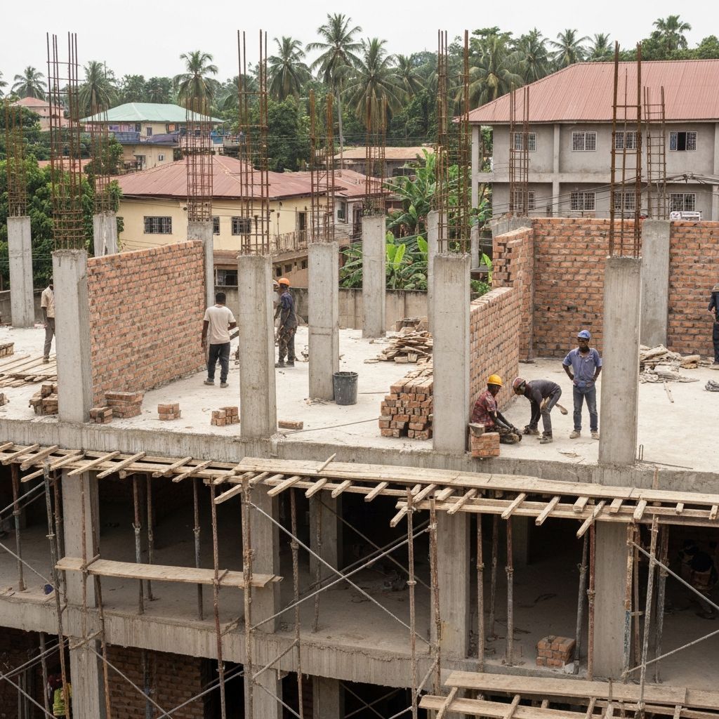 A modern 5-bedroom duplex development in Lekki Phase 2, Lagos. The project includes architectural design, structural engineering, and construction supervision. The design features contemporary Nigerian architecture with sustainable elements including solar panels and rainwater harvesting systems.
